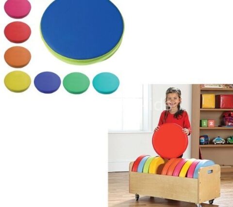 Anaokulu Yuvarlak Sınıf Minder 12 Li Daire Minder ve Ahşap Tekerlekli Stand